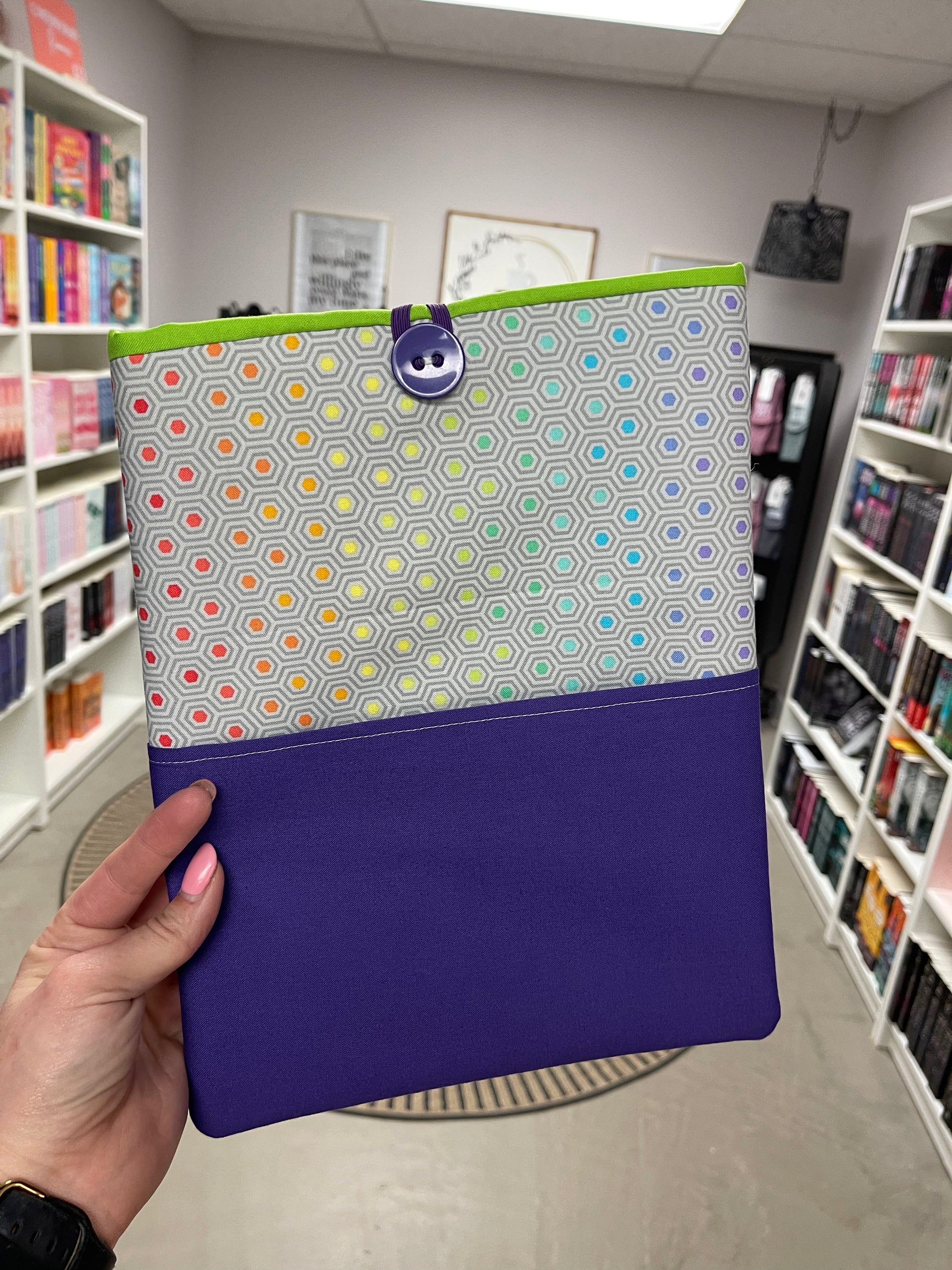 The Deluxe Booksleeves have either a button and pocket or are zippered!